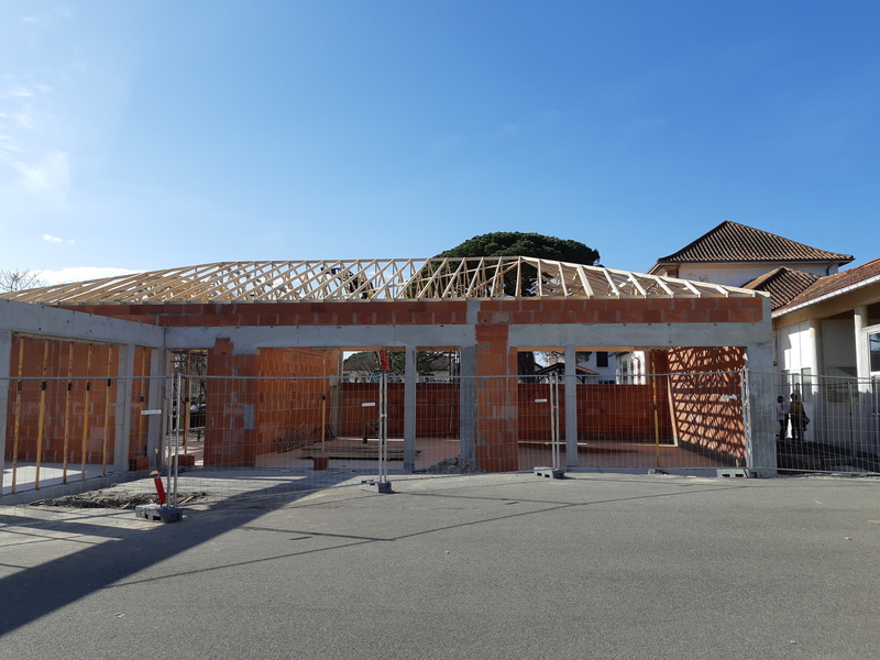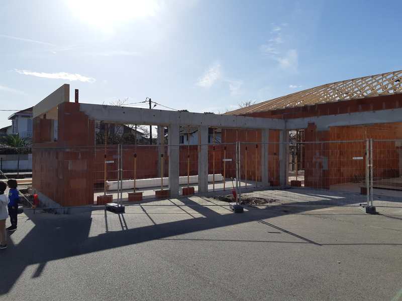 Depuis le début des vacances d’été, les travaux ont commencé. Ils ont coupé la cour de récréation par des grillages pour protéger les élèves du chantier en construction. Ensuite ils ont détruit le pré- fabriqué pour construire quatre nouveaux bâtiments pour accueillir de nouvelles classes. Les ouvriers ont refait les toilettes au collège et au primaire. Puis ils ont fait une allée entre la cour du collège et la cour du primaire. La cour sera aussi grande que maintenant .Une barre sert à faire des fondations ce sont les armatures pour faire du béton, on le coule avec la bétonnière. Ils ont enlevé les bancs et les arbres pour mieux travailler, être tranquilles pour bâtir. Les briques sont très lourdes : elles pèsent 5 kg chacune. Le tuyau bleu est pour l’eau froide, rouge pour l’eau chaude, vert pour le réseau et le gros rouge pour l’électricité. Il y aura un robinet dans chaque classe et du chauffage. Les murs, la charpente en bois, les tuiles seront terminées vers Pâques, et après il y aura plein de finitions : les cloisons, le carrelage, les fenêtres, puis la peinture. Le plombier, l’électricien, l’informaticien devront brancher les réseaux. Les préaux seront avancés de 3m, collés au bâtiment principal. Ensuite, il faudra installer, les tableaux, les bureaux des élèves, les meubles….