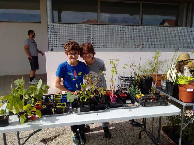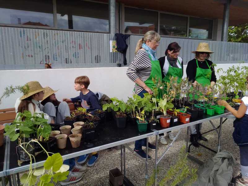Le travail des élèves des classes du CP-CE2 et du CM1-CM2B portent ses fruits. Vente de plants à la sortie des classes et au marché de CAPBRETON. Les fonds récoltés permettent d'entretenir le